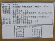 米、米麹、醸造アルコールと書いてありますが、このロットに限っては、醸造アルコールは入っていません。